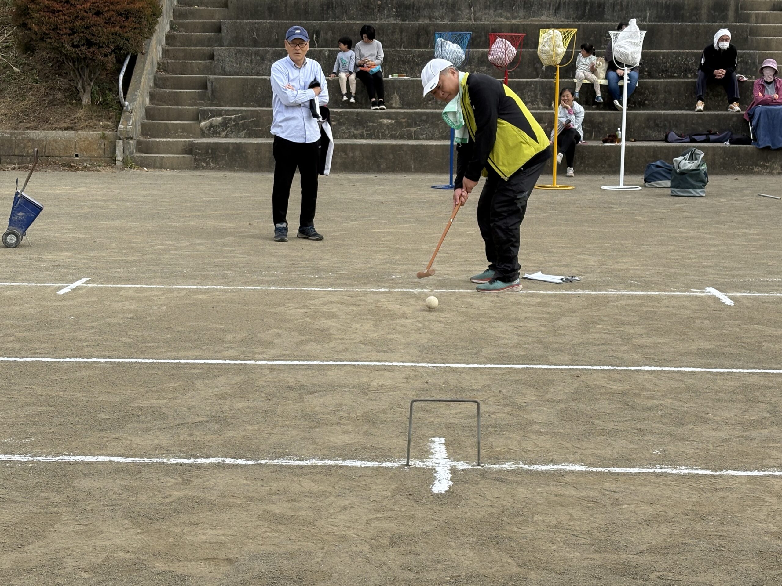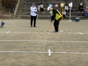 普段あまり触れるチャンスの無い形のゲーム、練習も1回だけ・・・とそれなりにハードルが高く、思ったコースにボールが飛ばず苦戦します。