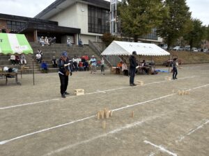 ・モルック(聞き慣れないゲームですが、木製の棒を倒して点数を競います)