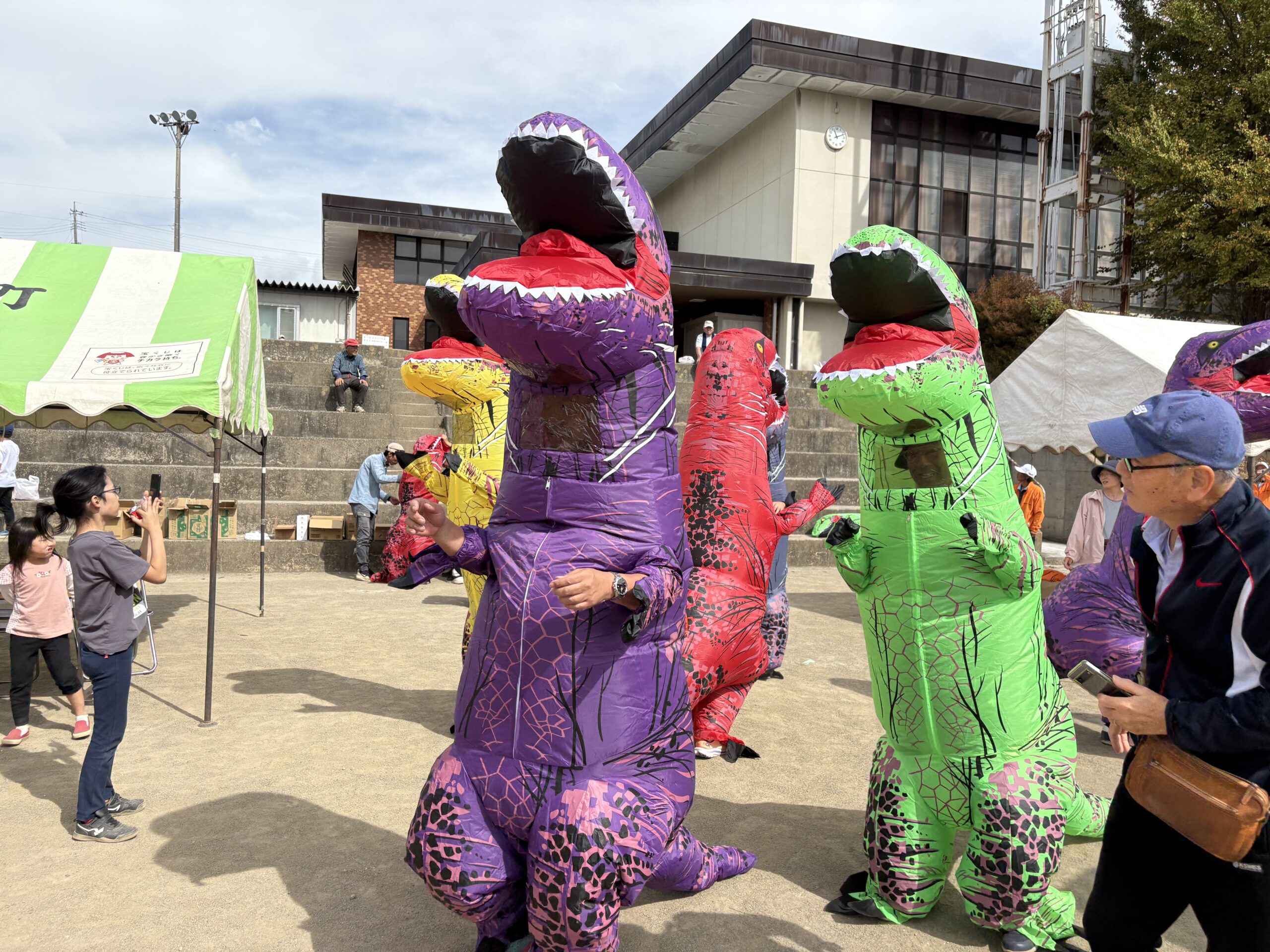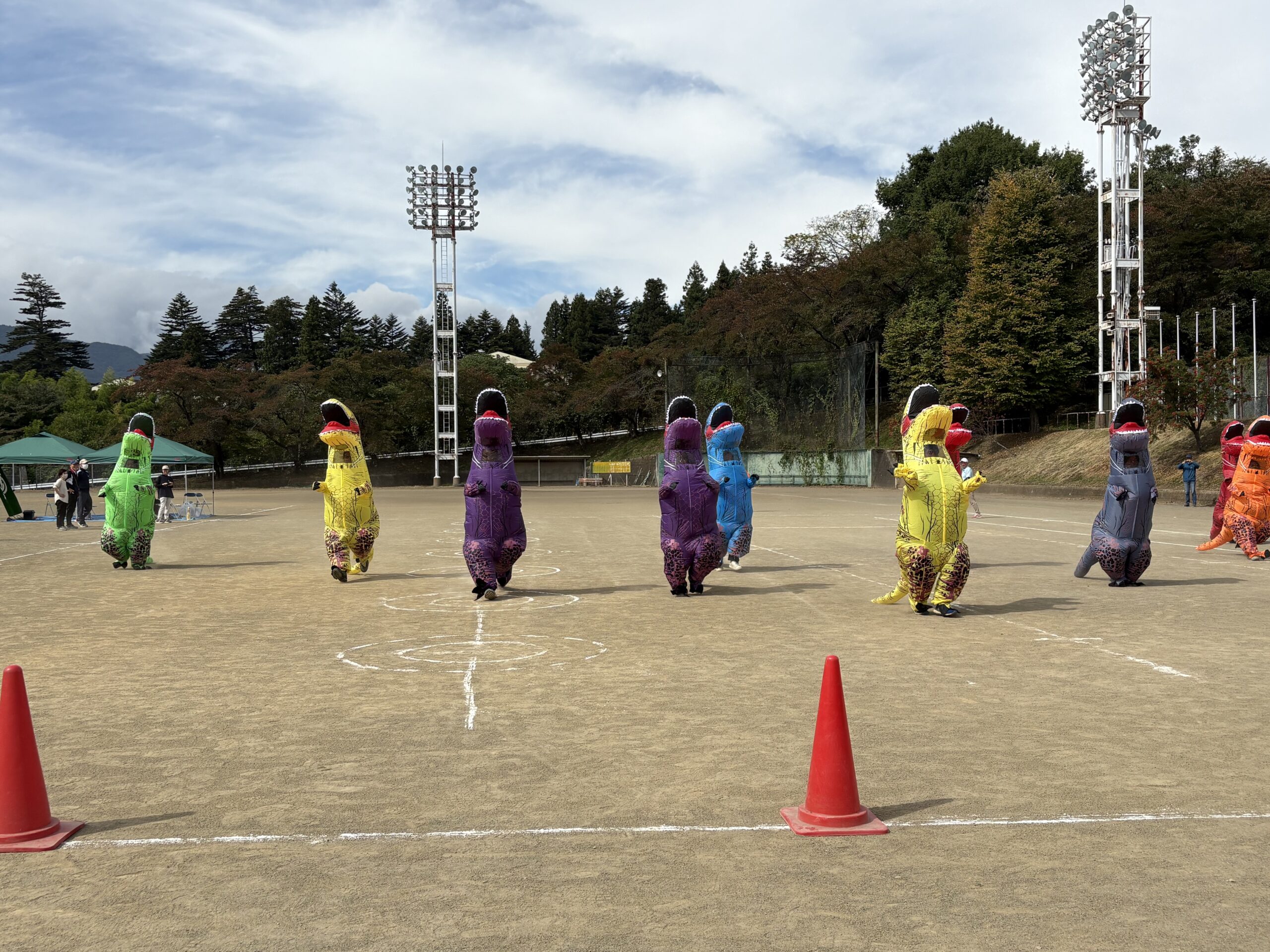 恐竜の着ぐるみをかぶって、徒競走というハードなレース!