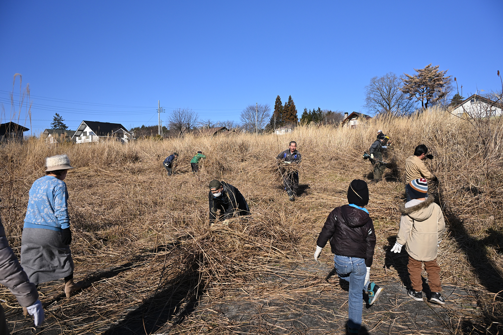 「櫓の柱材」・「青竹切り」・「茅刈り」の3部隊に別れて材料の調達です。