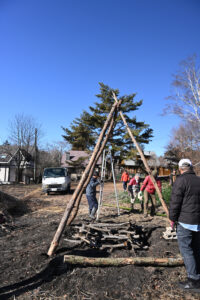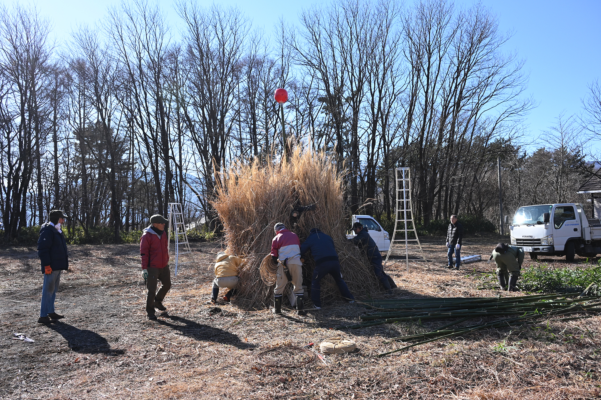 1月4日(日) どんど焼きの準備、櫓建てを行いました。
