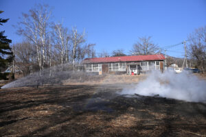 林野火災注意報はまだ継続ですが、消防団の協力が得られ、風も治まったので急遽お焚き上げを実施しました。